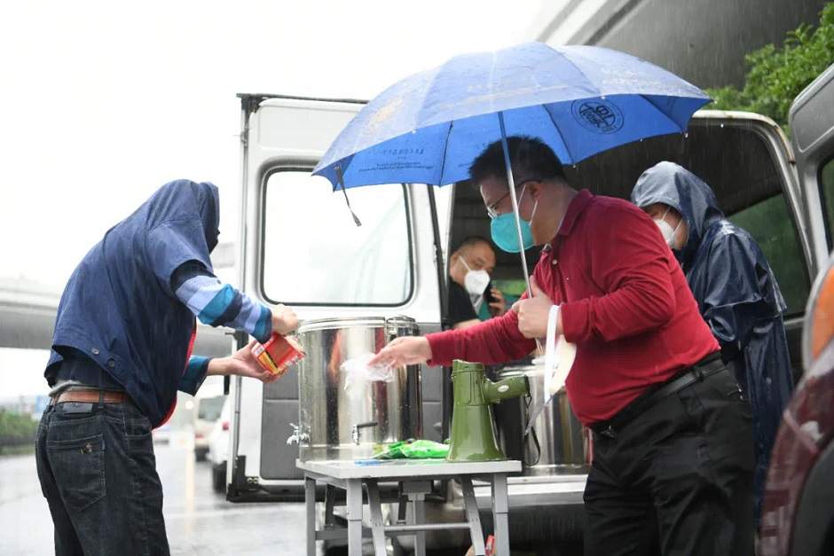 我还想过,送面包和矿泉水。不过孙中钦说,现场比较冷,又时常下雨,最好能够让滞留者吃一口热的。