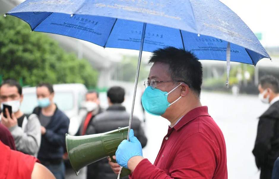 520这一天下午4时30分,我们几个可以外出的人员,在虹桥火车站滞留者聚集的地方集合。现场支开小桌子,摆好垃圾袋后,大家简单地分了分工——
