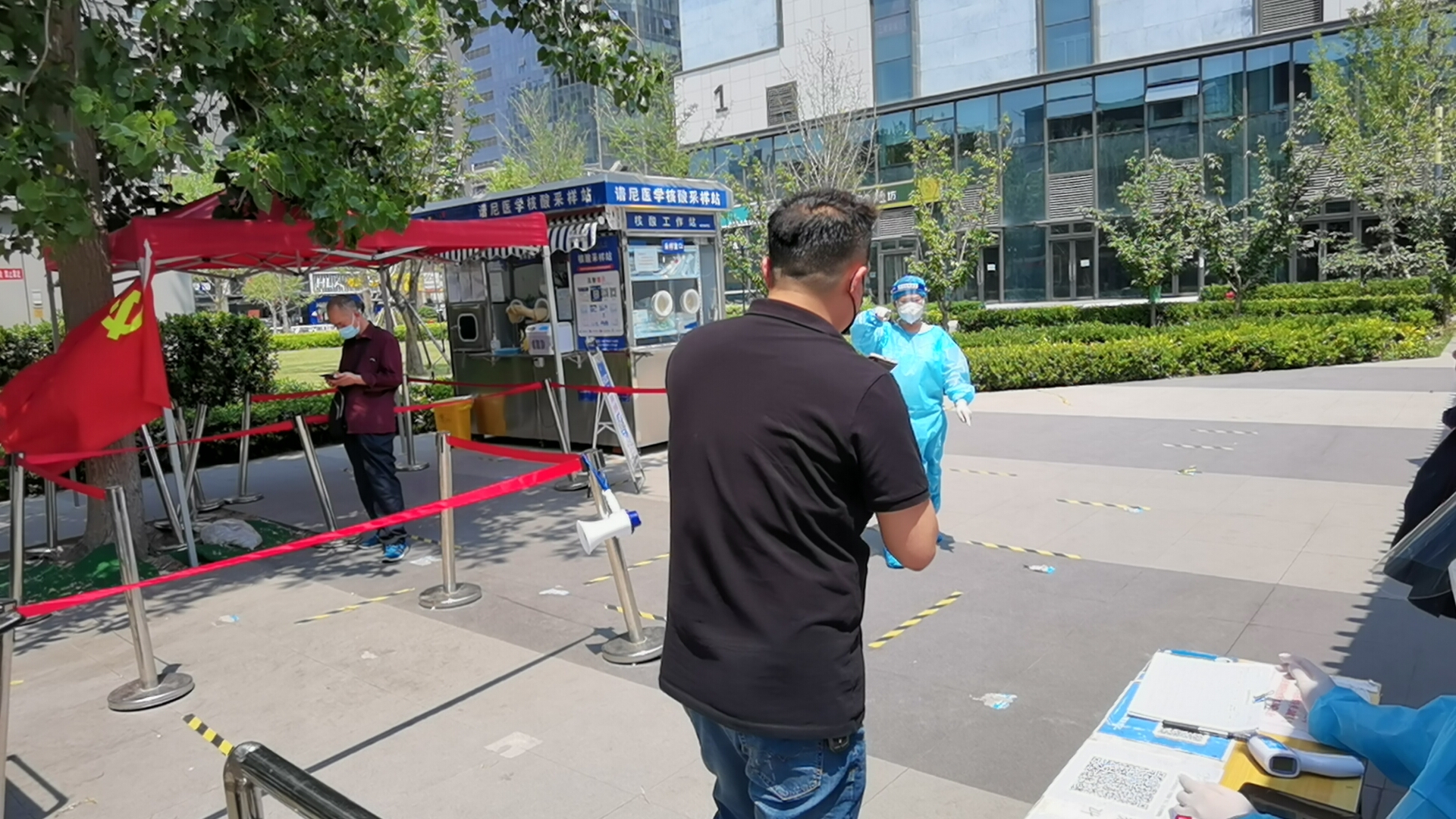“咱穿红衣服的都是志愿者,每天轮流都在这值班,闲暇时帮助他们维持秩序、扫码、2米距离、做好防护。”该工作人员说,居民24小时内请勿重复进行核酸检测,红黄码人员不得在采样屋采样。