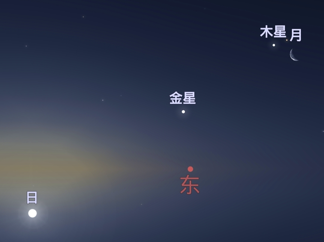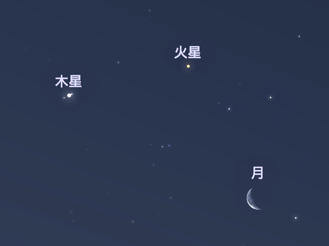 木星、火星和残月组成“双星伴月”笑脸图 一眼被萌到