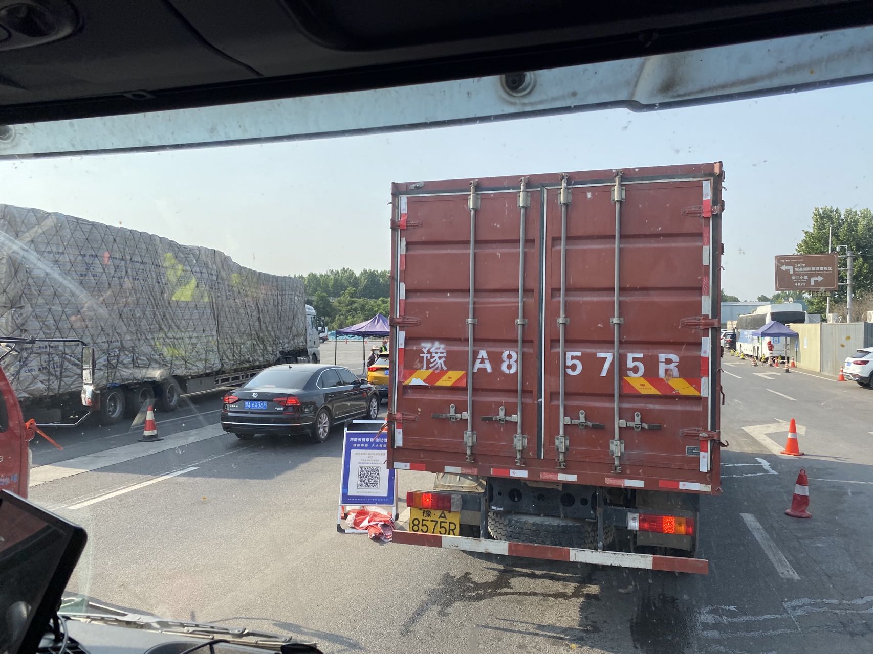 李建伟驾驶的是一辆9.6米长的黑色厢式货车,车门上还留有未清理干净的封条痕迹,“现在好多了,前一段去哪都不能下车,封条贴了一层又一层,最紧张时十几天都没回家。”