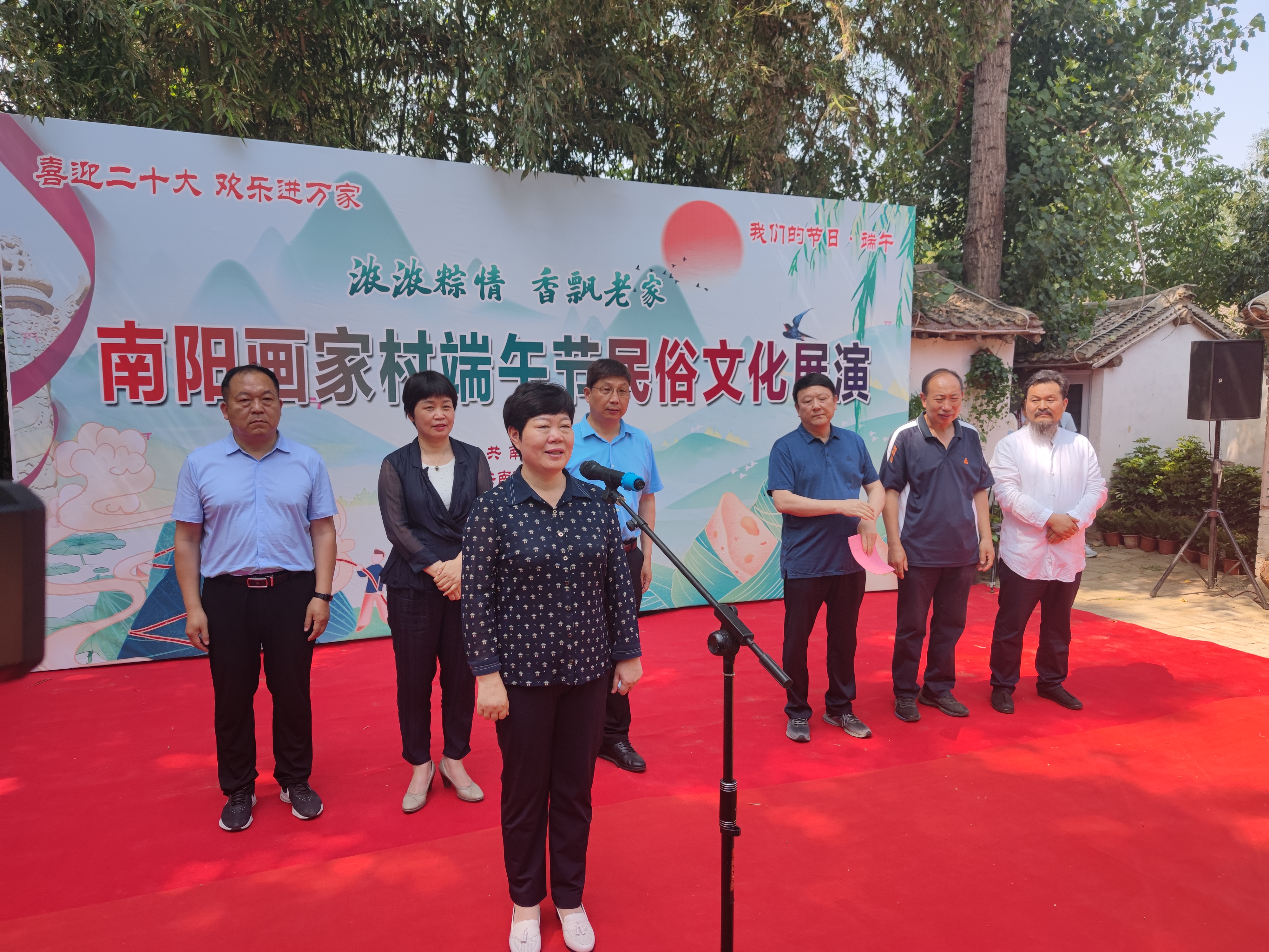 宛城区委常委、宣传部长、副区长张东焕在致辞中表示,今年全市端午民俗文化展演活动再次成功举办,就是希望发挥这一阵地的辐射带动作用,展示南阳民俗文化精粹,为人民群众呈现精彩的传统文化盛宴,唤起社会各界对民俗文化的关注和认同,以实际行动努力讲好宛城故事,助力南阳出彩,为党的二十大胜利召开营造浓厚氛围。