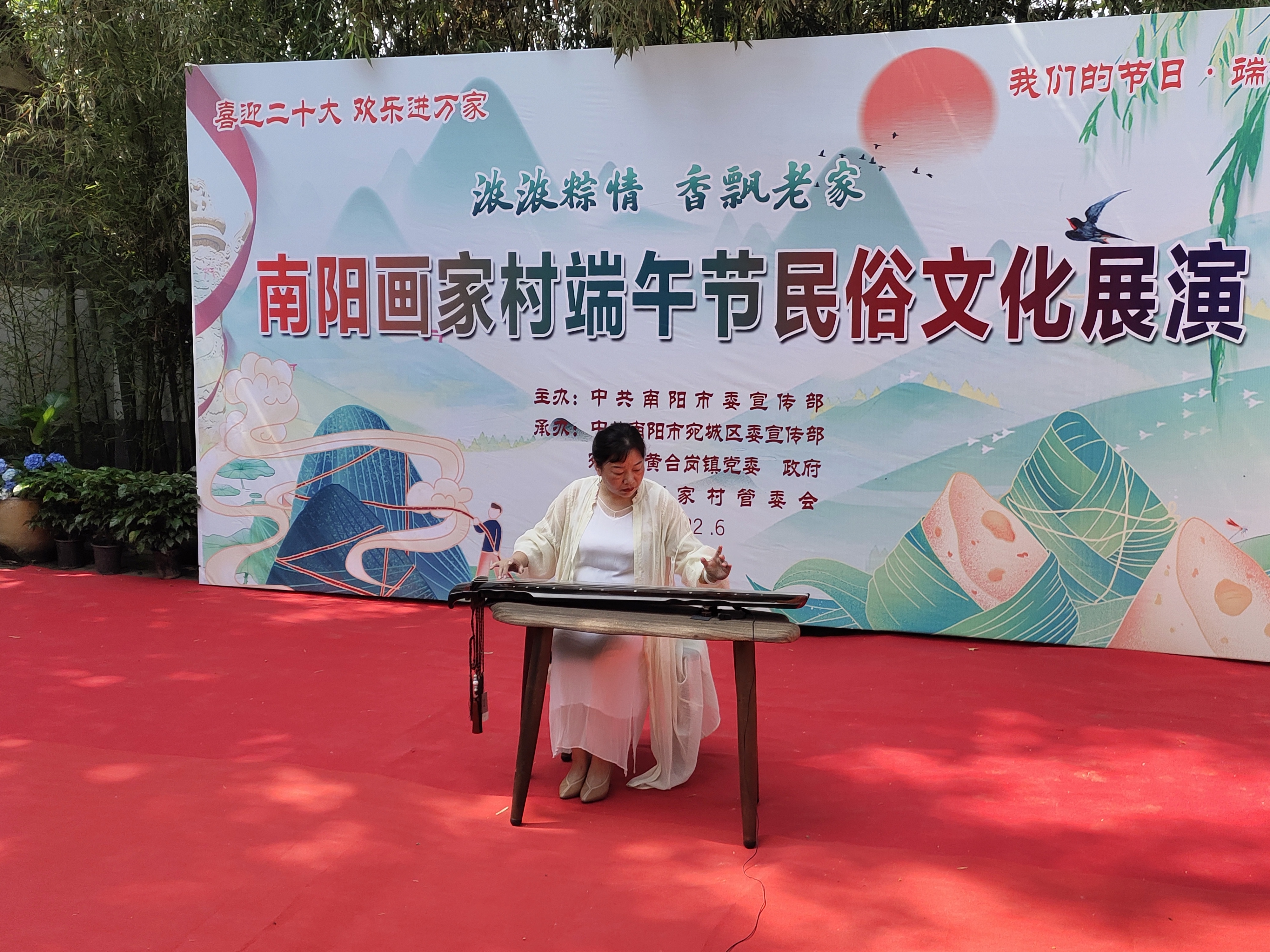 大河网讯 琴声、歌声、舞声,声声入耳;粽香、艾香、麦香,沁人心脾。6月2日,在我国传统节日端午节即将来临之际,由中共南阳市委宣传部主办、中共南阳市宛城区委宣传部承办的“浓浓粽情 香飘老家”端午节民俗文化展演活动在宛城区画家村隆重举行。南阳市委宣传部、宛城区委宣传部、黄台岗镇党委相关领导及书法、舞蹈、古琴等社会各界文艺文化工作者参加了此次活动。