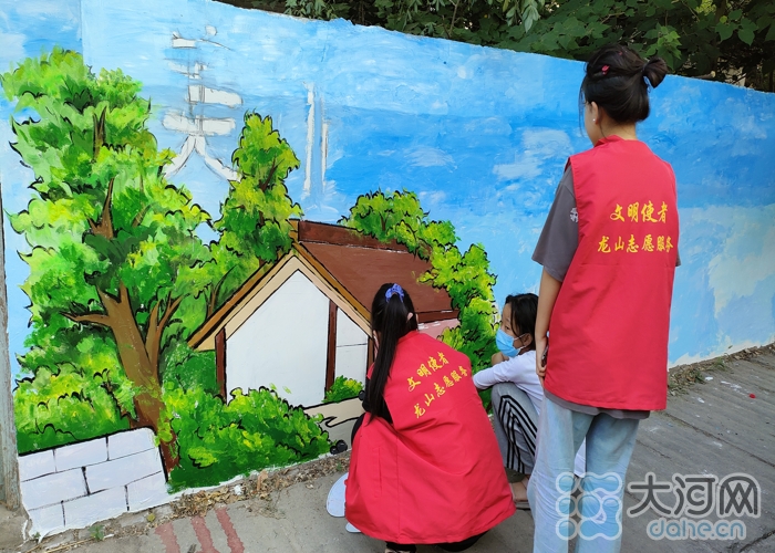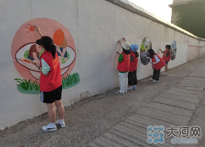 就这样,在郏县西大街体育巷、经四路等背街小巷,一群大学生志愿者端着调色板,执笔对墙面作画。“能用所学的知识、绘画技巧为社区服务出一份力,很有意义,对我们自己也是一个提升。”志愿者郭丁祎说。