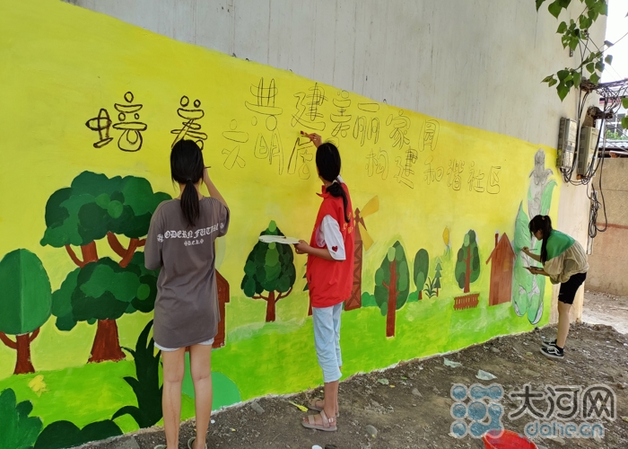 大学生志愿者以墙作画,绘出美丽社区新画卷