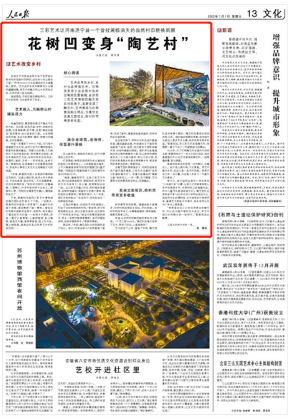 艺术在寻找乡村,乡村也在呼唤艺术。河南洛阳洛宁县自然村花树凹地理位置偏僻,在洛阳三彩艺术博物馆陶艺团队的改造下,逐渐变成了陶艺村,艺术景观与自然景观相互呼应,当地借此发展文旅项目,给村民带来更多收益。