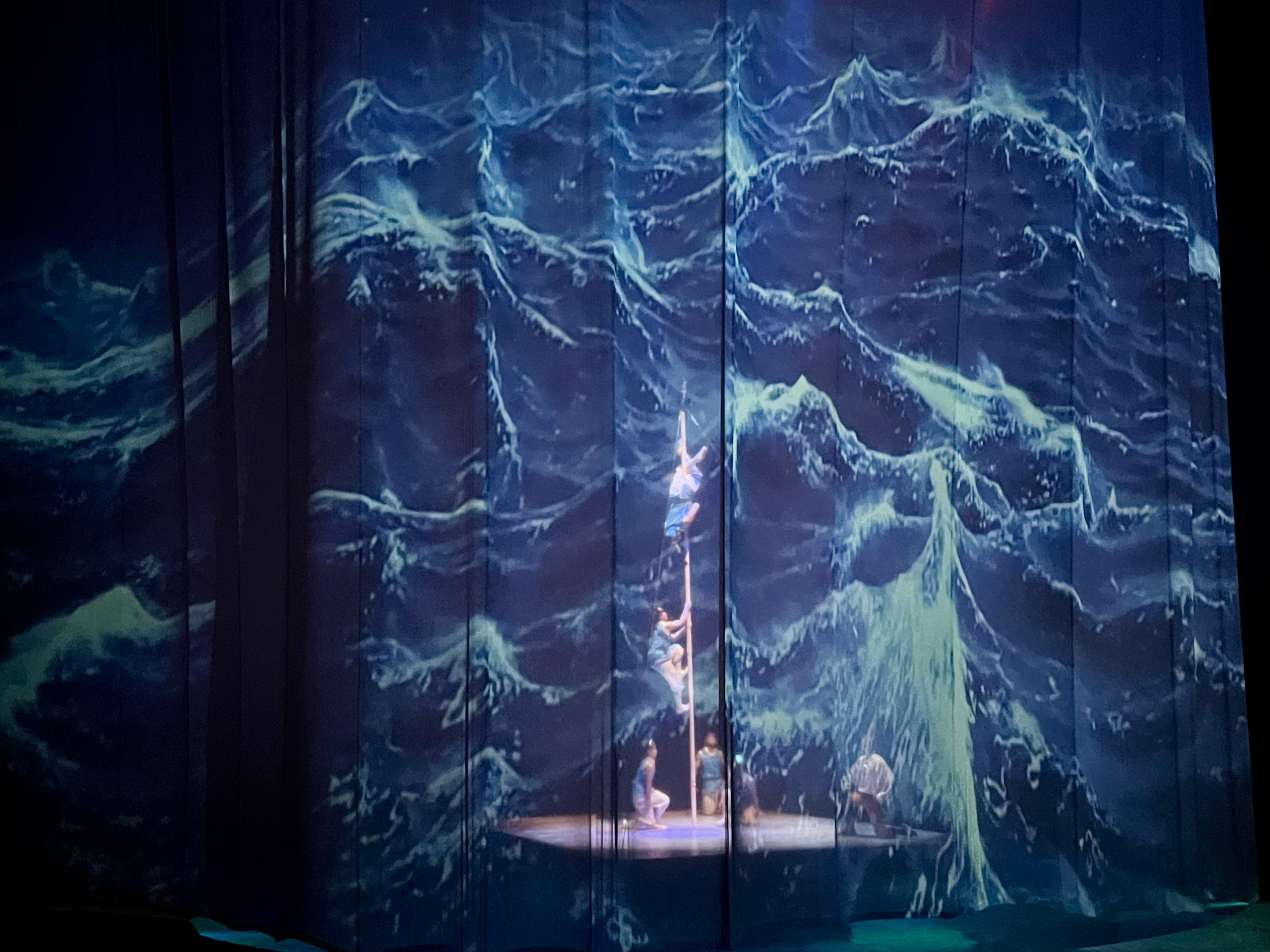 这台杂技综艺秀运用水幕作背景,融入黄河、龙等地域文化符号,将戏剧、舞蹈、音乐、魔术、花样游泳、跳水等多种艺术形式与杂技融合为一体,在高新科技影像手段和魔灯幻影元素陪衬下,营造出一场超强冲击力的视觉盛宴。