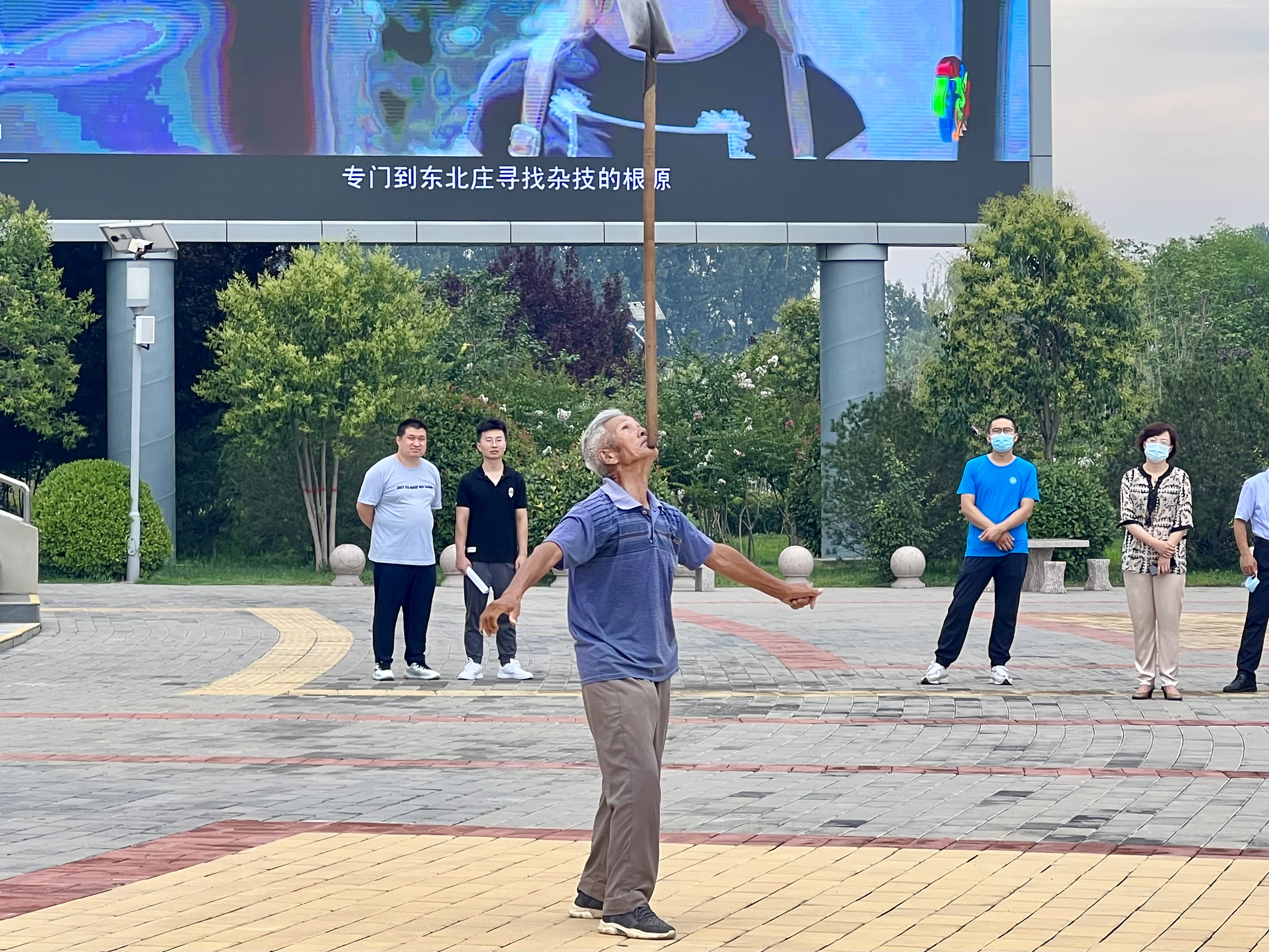 “远在数千年前,居住在黄河流域的先人就在狩猎、耕作、采集、畜牧、战争、祭祀等过程中创造着最初的表演艺术。随着生产力的发展,原始的表演艺术逐步分化成演奏乐、歌唱、舞蹈等形式。其中偏重于技艺性的表演,便是萌芽状态的杂技。”讲解员介绍,东北庄杂技起源于春秋,兴盛于明清,发展于现代,以功力深厚、技艺精湛著称于世。