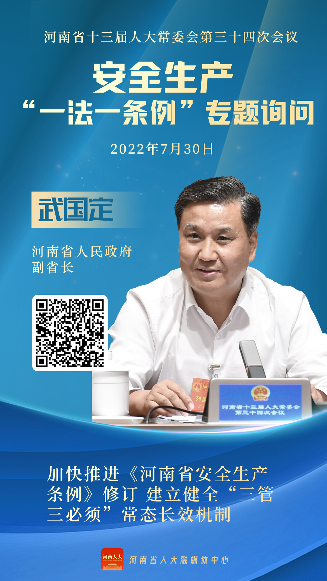 针对存在的突出问题,武国定介绍,下一步,将加快推进《河南省安全生产条例》修订,进一步细化安全生产责任措施,建立健全“三管三必须”常态长效机制。