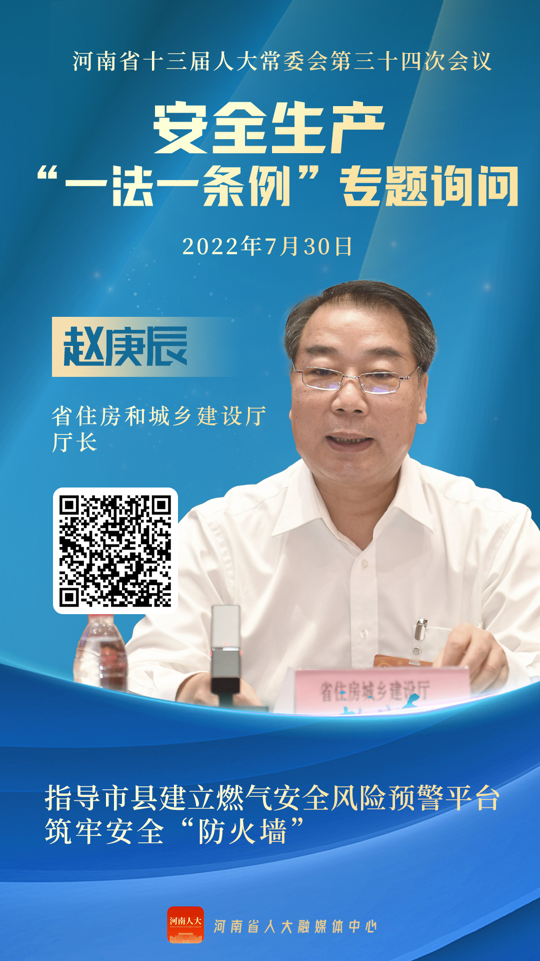 河南省人大融媒体中心讯 7月30日上午,河南省十三届人大常委会第三十四次会议举行联组会议,结合检查《中华人民共和国安全生产法》和《河南省安全生产条例》贯彻实施情况,就全省安全生产工作情况开展专题询问。省住房和城乡建设厅厅长赵庚辰接受省人大常委会委员、河南中医药大学原副校长冯卫生的提问,就省住建厅下一步将采取哪些措施加大城乡自建房规范管理,防范燃气爆炸事故发生作了回答。