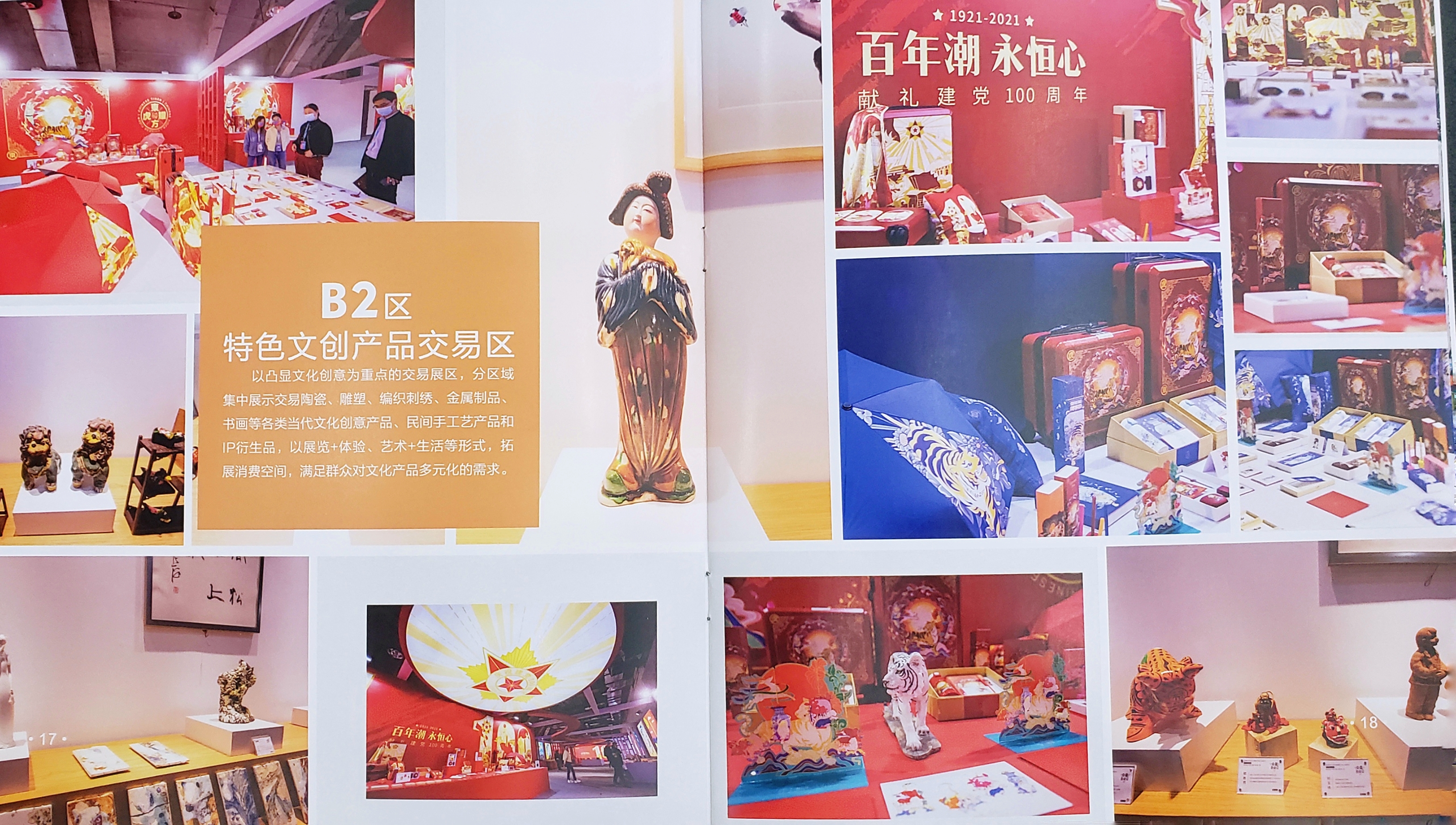 2.文创产品展示交易区。以凸显文化创意为重点,分区域集中展示交易陶瓷、雕塑、编织刺绣、金属制品、书画等各类当代文化创意产品、民间手工艺产品和IP衍生品,以展览+体验、艺术+生活等形式,拓展消费空间,满足群众对文化产品多元化的需求。主要包括文创设计展示交易区、一带一路文创产品交易区、潮玩文创产品交易区、特色文创产品交易区和文创市集等。