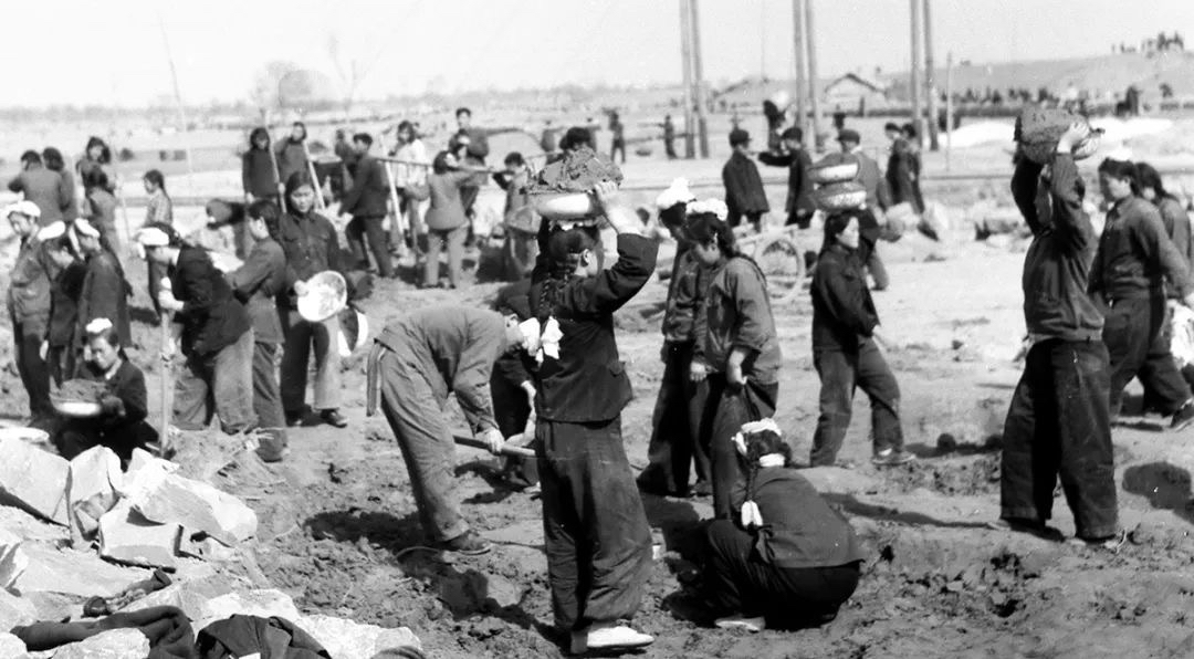 荒原上,红旗招展。焦裕禄指挥的筑路大军犹如一条长龙:铲土的、推车的、抬筐的……大家忙个不停,热火朝天。