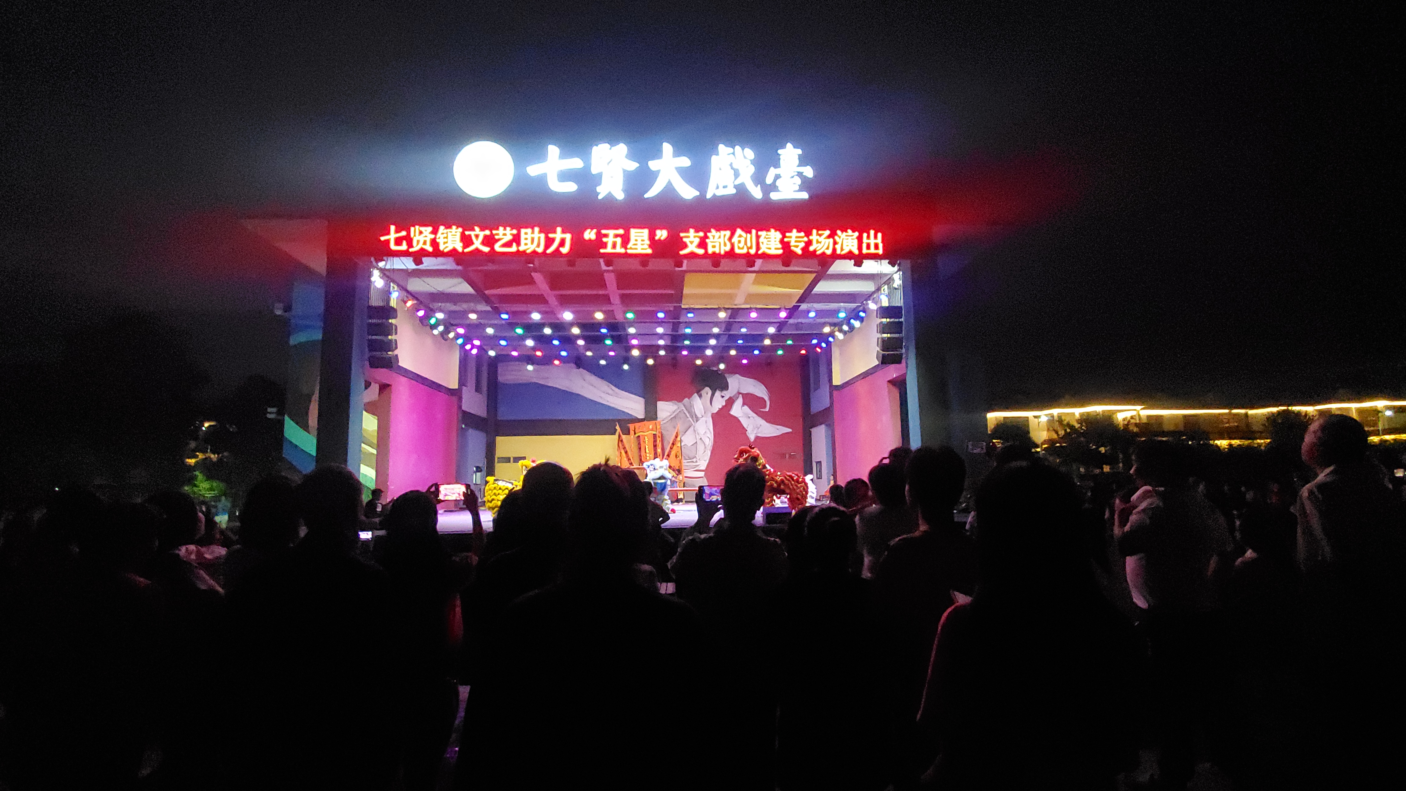 此次七贤镇文艺助力“五星”支部创建演出,是该镇创新推出的“夜娱”活动丰富文明幸福星的一项具体实践。自““五星”支部”创建以来,该镇以全镇中心工作为突破口,创新推出以“夜商”活动激活产业兴旺星、以“夜美”活动擦亮生态宜居星、以“夜巡”活动护卫平安法治星、以“夜娱”活动丰富文明幸福星、以“夜学”活动赋能支部过硬星、以“夜话”活动推出“五星”创建全域起势的“五星六夜”系列活动。