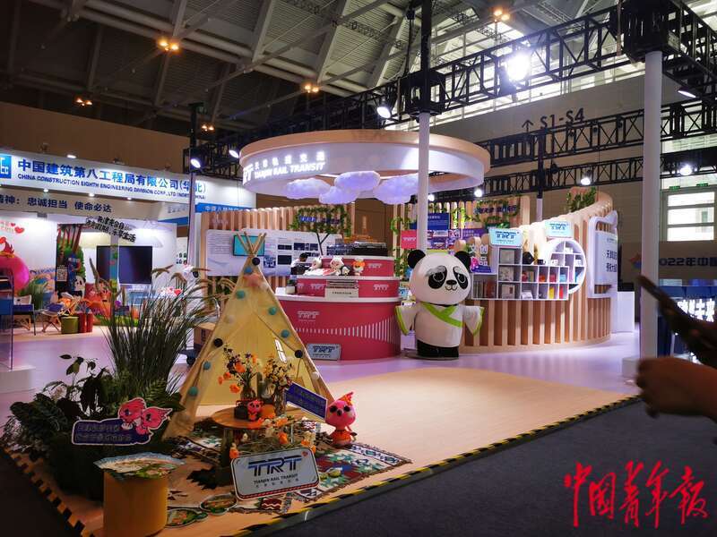 天津轨道交通展位,圆滚滚的熊猫“热情招呼”着观众。