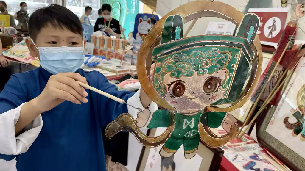 645家博物馆及企业汇聚郑州国际会展中心,不乏民间艺术传承人及非物质文化遗产展示。记者在“博博会”上邂逅由河南精灵梦皮影艺术团制作的皮影版吉祥物“鼎鼎”。