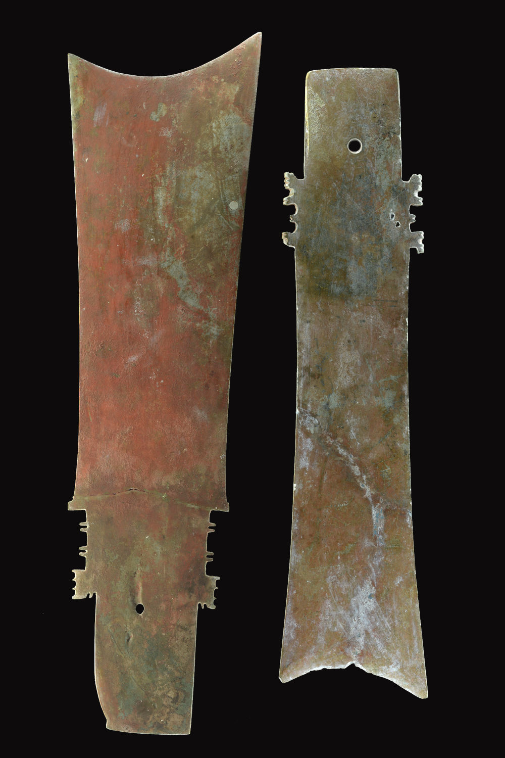 在夏朝晚期都城河南偃师二里头遗址,发现有4件玉牙璋。与绿松石龙形器、乳钉纹铜爵等知名文物相比,牙璋的“长相”似乎过于“平淡”:通常呈扁薄长条形,柄部有孔,前端有凹弧刃、Y形刃或斜平刃,在璋身与柄部相接处的两侧边缘,有凸起的扉牙。