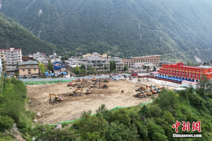 磨西镇一片空地上,正在建设首个过渡安置板房小区。项目建设部负责人湛明秋介绍,该过渡安置板房小区占地9000平方米,将建设170间板房,包括公共卫生间、浴室、洗衣房、厨房、超市、办公室,预计月底达到入住条件。