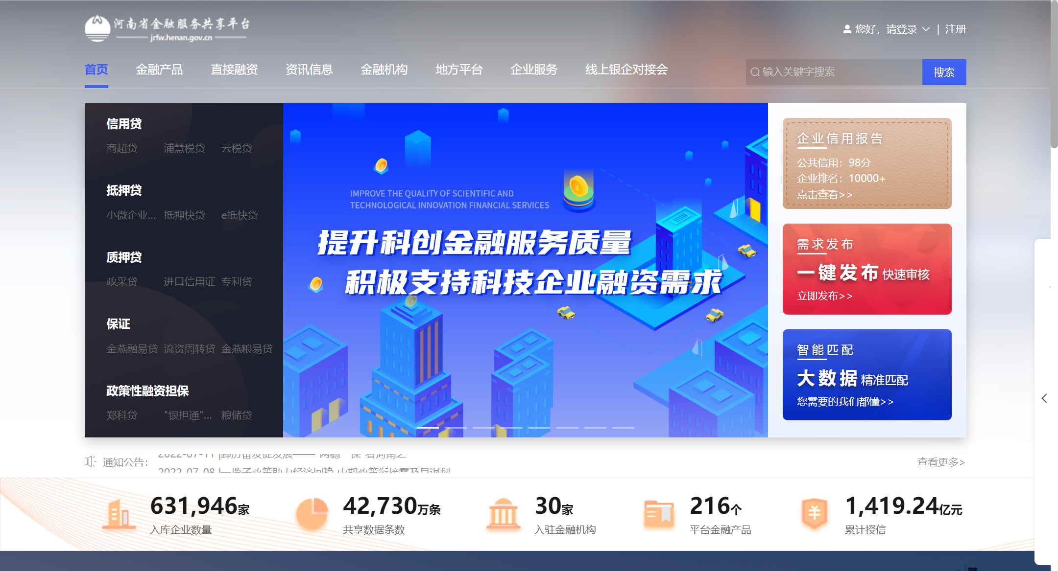河南省金融服务共享平台网站截图