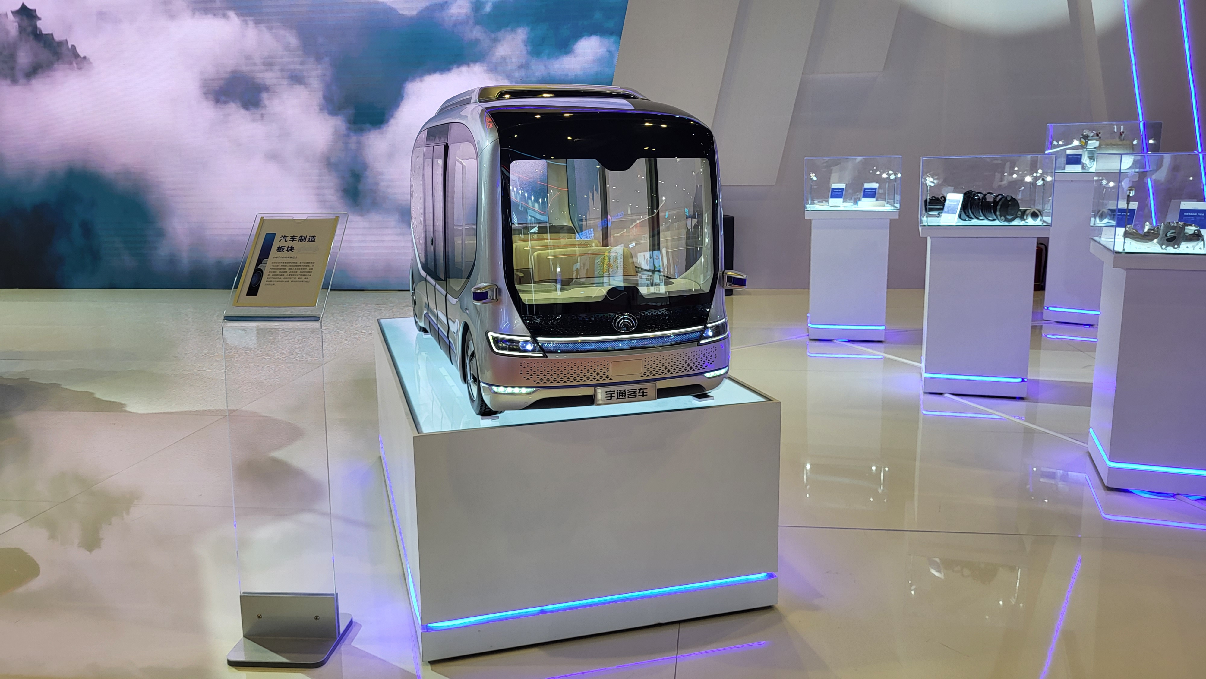 自动驾驶巴士、电磁阀减振器、L173F125动力电池、永磁同步驱动电机总成(G100)……在河南展区内有一场“汽车总动员”。