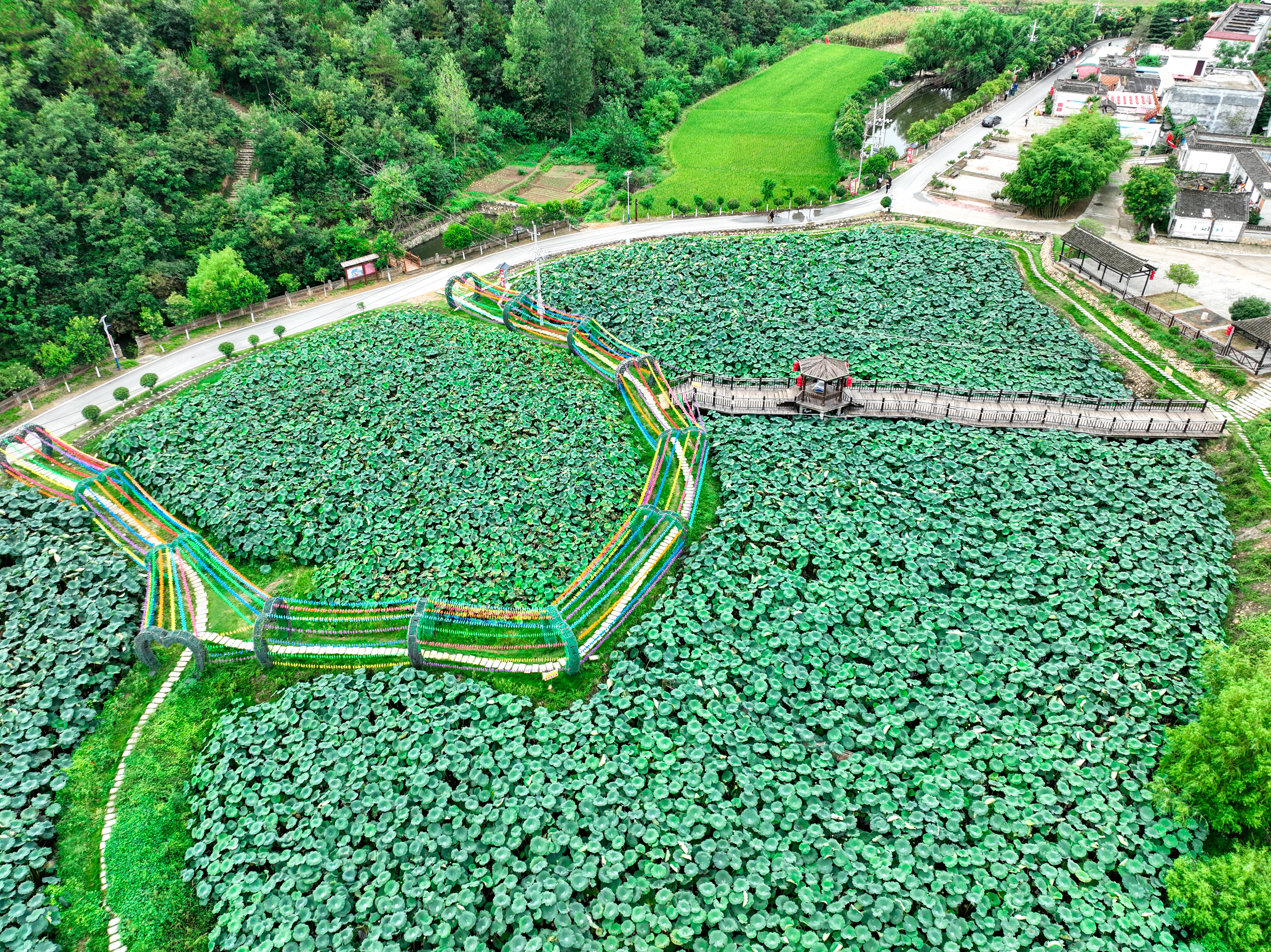 大河网讯 金秋九月,走进南阳市桐柏县新集乡磨沟村,百亩荷塘满池碧绿,如诗如画的美景令人沉醉。