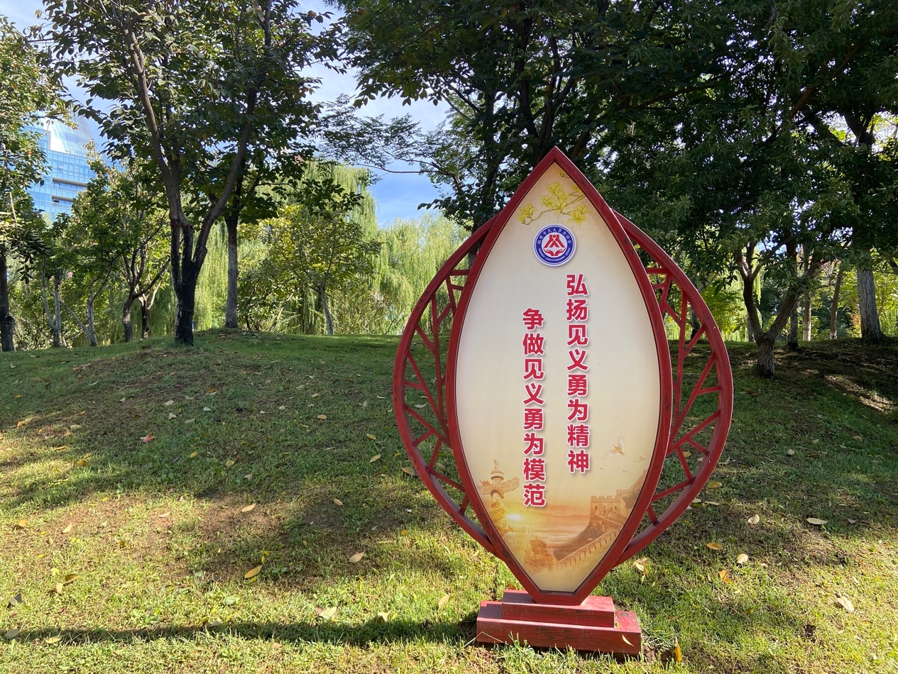 鹤壁淇滨区丹枫园见义勇为主题游园一景