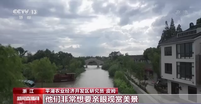 浙江平湖农业经济开发区研究员 皮姆:这就是传统的中国小镇,但我很喜欢,这带有浪漫的感觉。我很喜欢这样的老建筑,我的家人被中国的美景惊讶到了,他们说没想到这么美的地方会在中国,他们非常想要亲眼观赏美景。