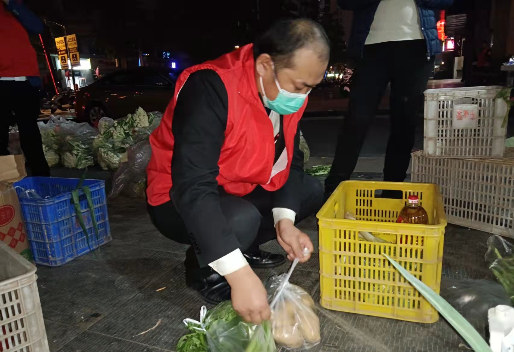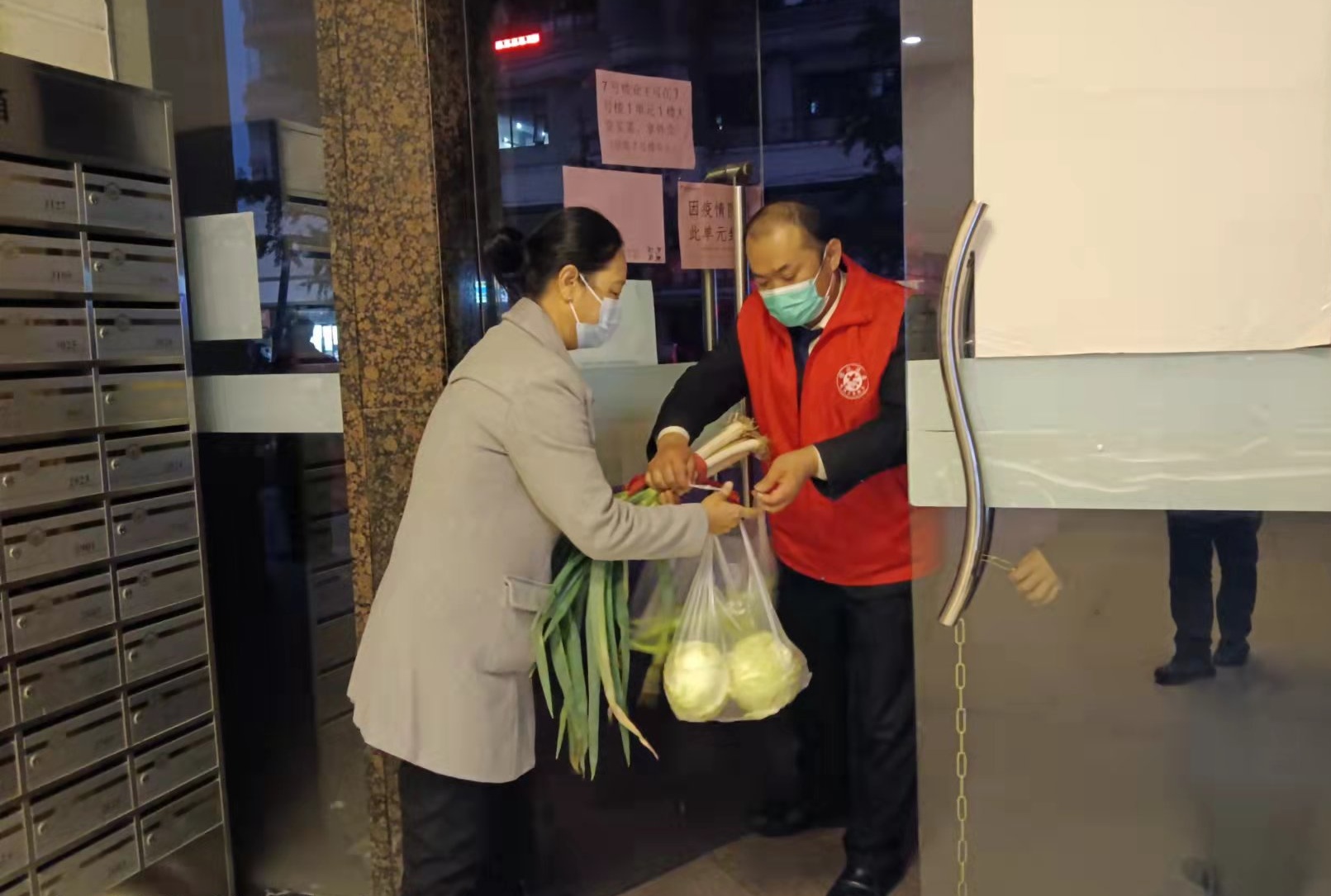 “3斤西红柿、1斤土豆、1棵白菜、2斤面条,这是8号楼2单元15楼业主购买的菜品,楼管及时送上去。”10月27日傍晚,未来路街道升龙社区升龙物业经理王秀杰正带头化身蔬菜“配送员”,为“足不出户”的社区居民采购、配送生活物资。