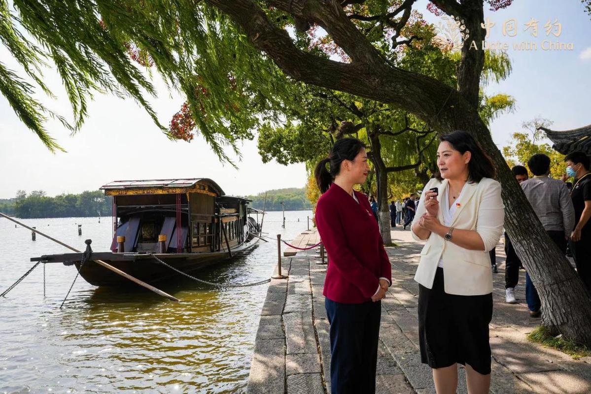 张楚燕在回答中国日报网副总编辑李军提问时说:“我感受最深的就是随着时间的推移,我们的国家越来越强大,全世界的目光也越来越聚集到中国身上,有更多的外国人愿意来嘉兴听我们中国的故事,愿意来听中国共产党的故事。二十大报告也为我们未来讲好红船故事,弘扬红船精神指明了方向。”