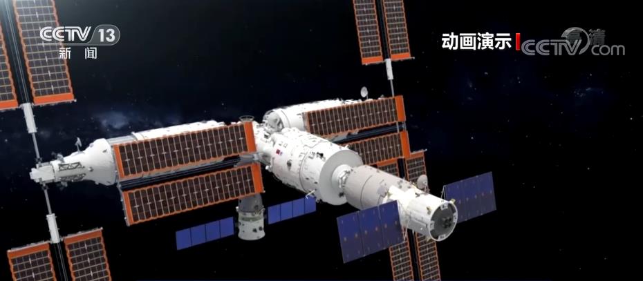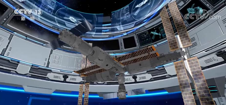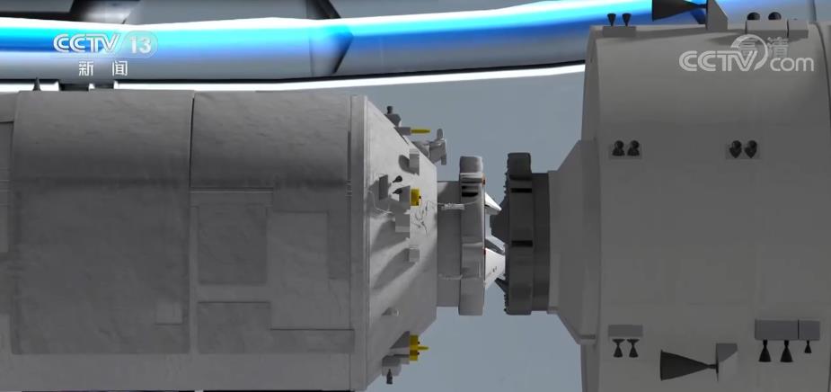 航天科技集团五院货运飞船系统总体副主任设计师 张振华:“T”字构型空间站是三舱建成以后的一个构型,天舟五号与它对接,对接的质量更大,达到了80吨级这么一个量级。所以说为了缓解这种大目标对接下的冲击,我们对接机构也是有相应的适应性的设计。增加了更多的管控措施,把对接的冲击减小到最小,在有航天员驻留的情况下实施我们的自主交会对接。