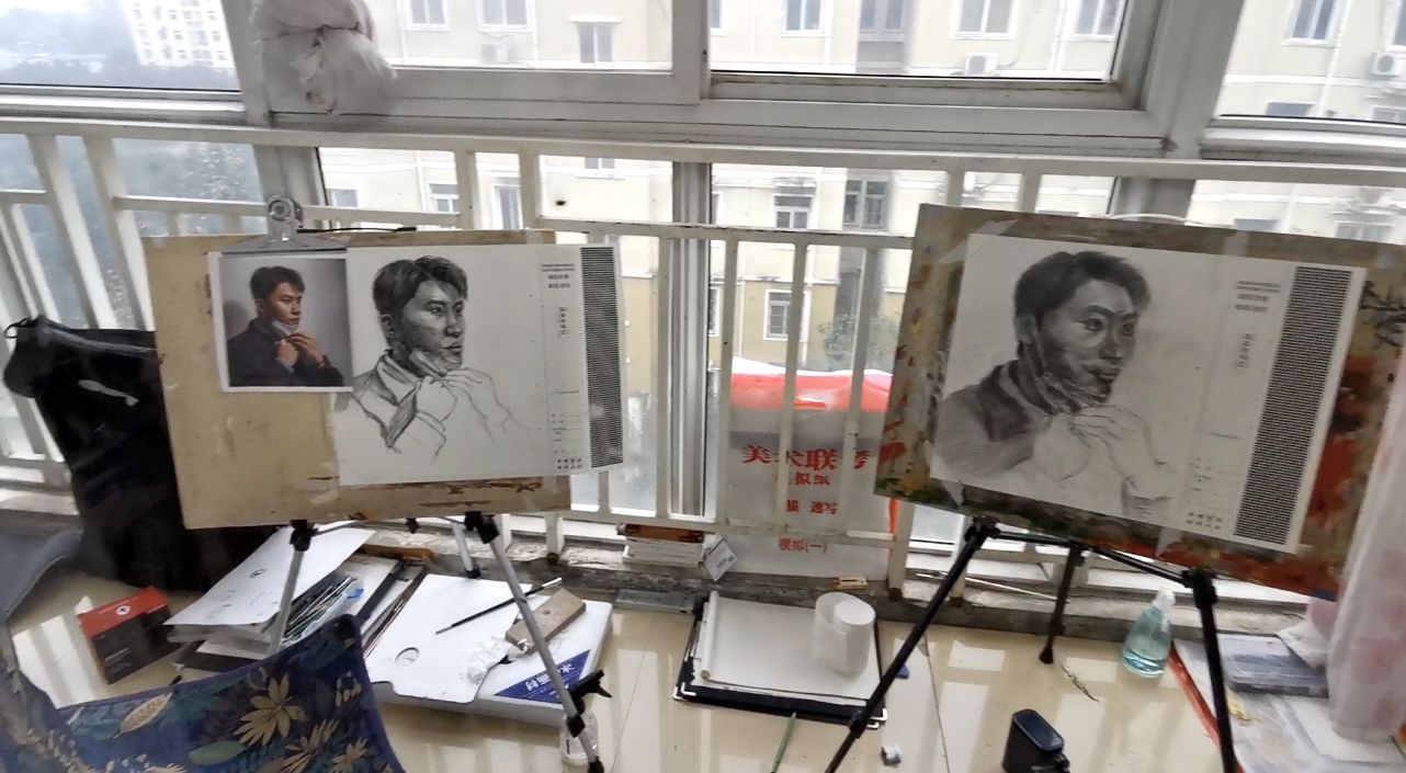 “现在正是美术考前集训的关键时期,联考前这一个月非常重要,在家里我还可以现场上课,给他们手把手辅导。”就这样,潘老师与三名学生开启了长达30多天的“朝夕相处”。