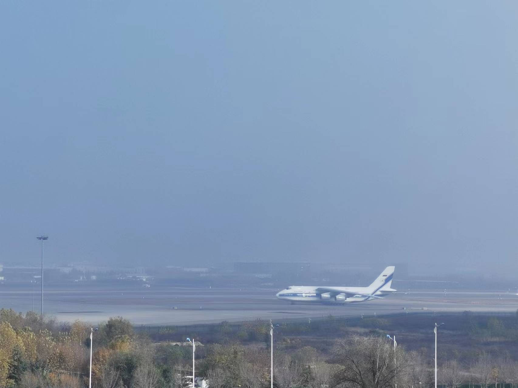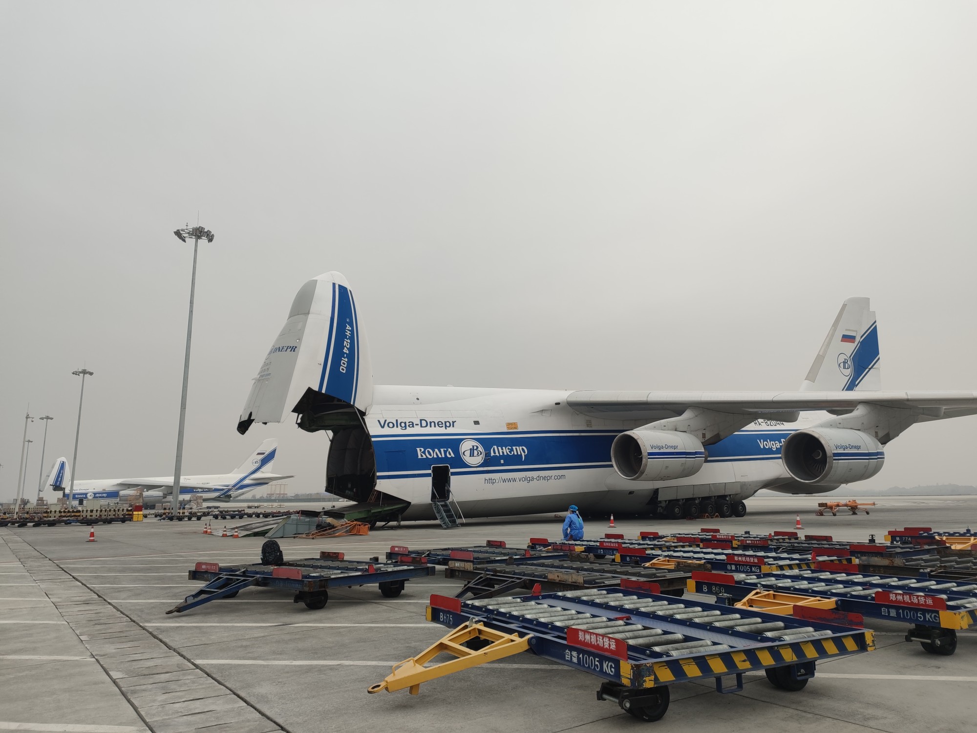 在目前全球超大型全货机市场上,AN-124是其中翘楚之一,最大载货量可达150吨,小型货机的最大载货量不到20吨。原本就已经繁忙的郑州机场北货区,更是迎来了今秋以来郑州机场最频繁的“货机秀”,自11月23日11时至23日23时30分,郑州机场2号跑道先后有3架AN-124全货机降落、起飞,这一天,郑州机场保障了多架来自卢货航、俄罗斯伏尔加第聂伯航空公司等航空公司的大型全货机。