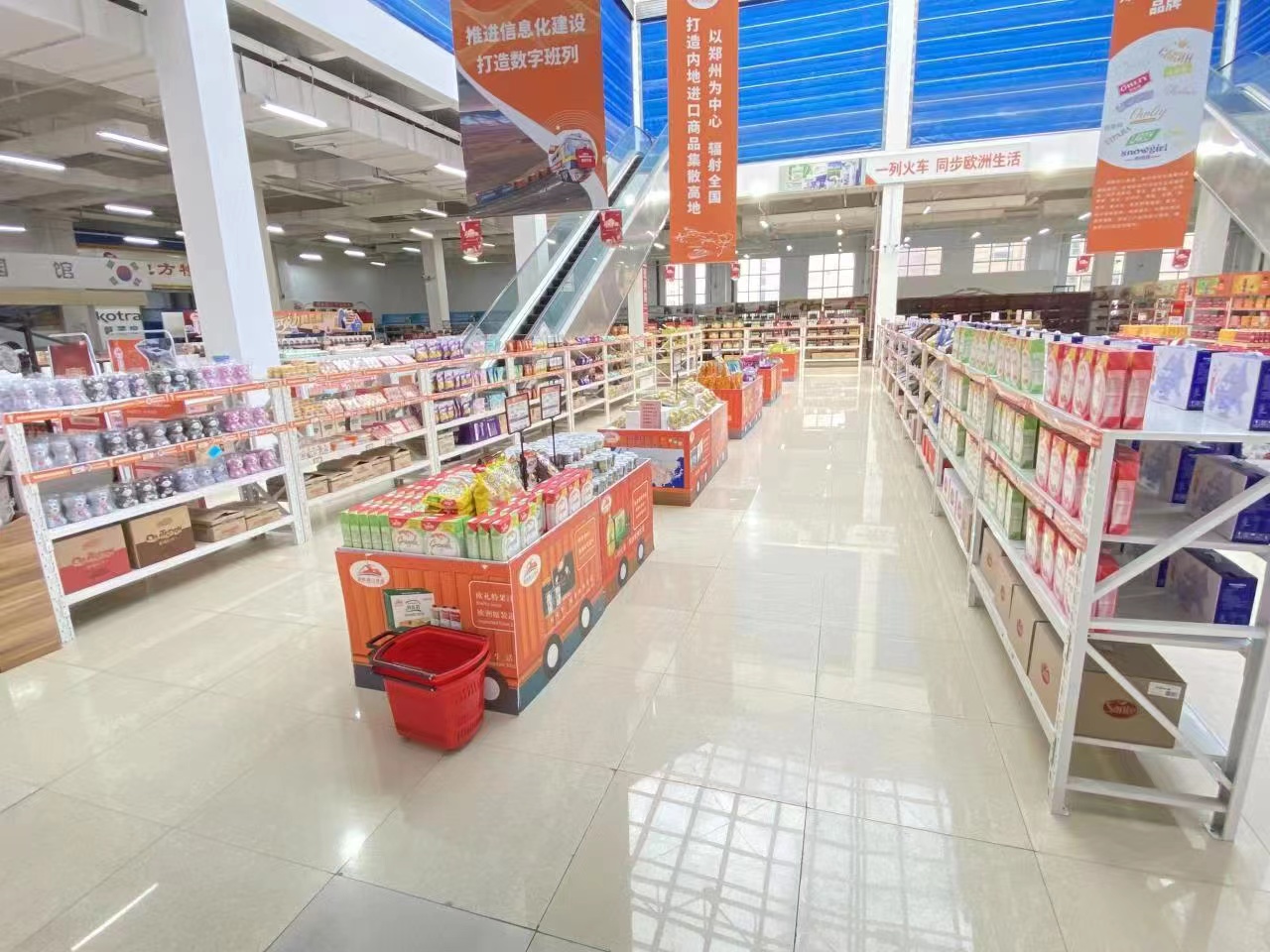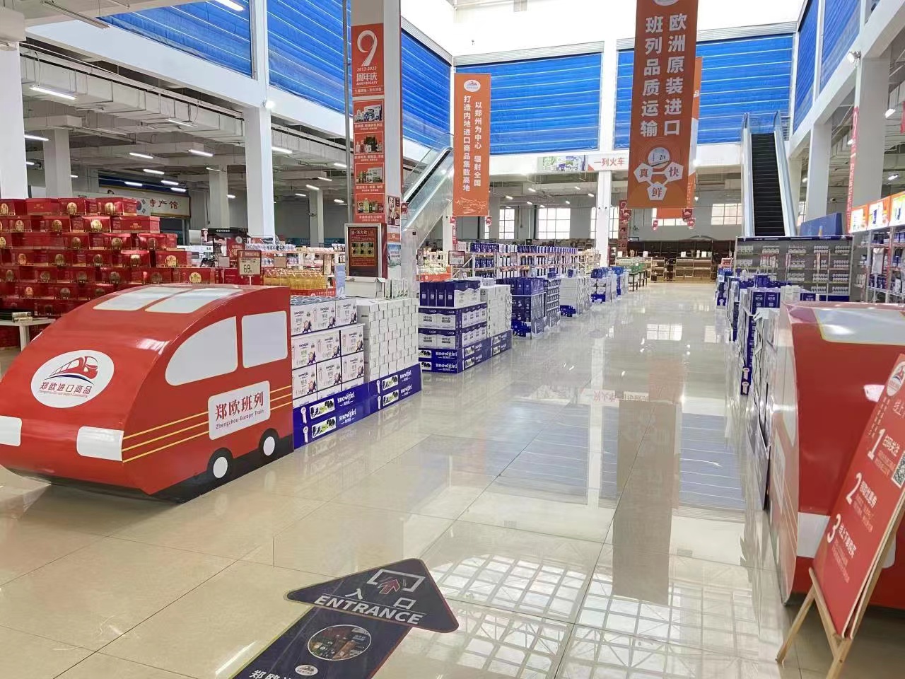 走进位于郑州市经开区的“郑欧班列进口商品展示体验中心”的大厅内,各种洋货琳琅满目,白俄罗斯欧惠特牛奶、德国斯纳格酸奶、法国芮贝特红酒、意大利乐贝蒂起泡酒、乌克兰乐优瑞食用油、波兰欧礼特果汁……犹如一场“万国博览会”。