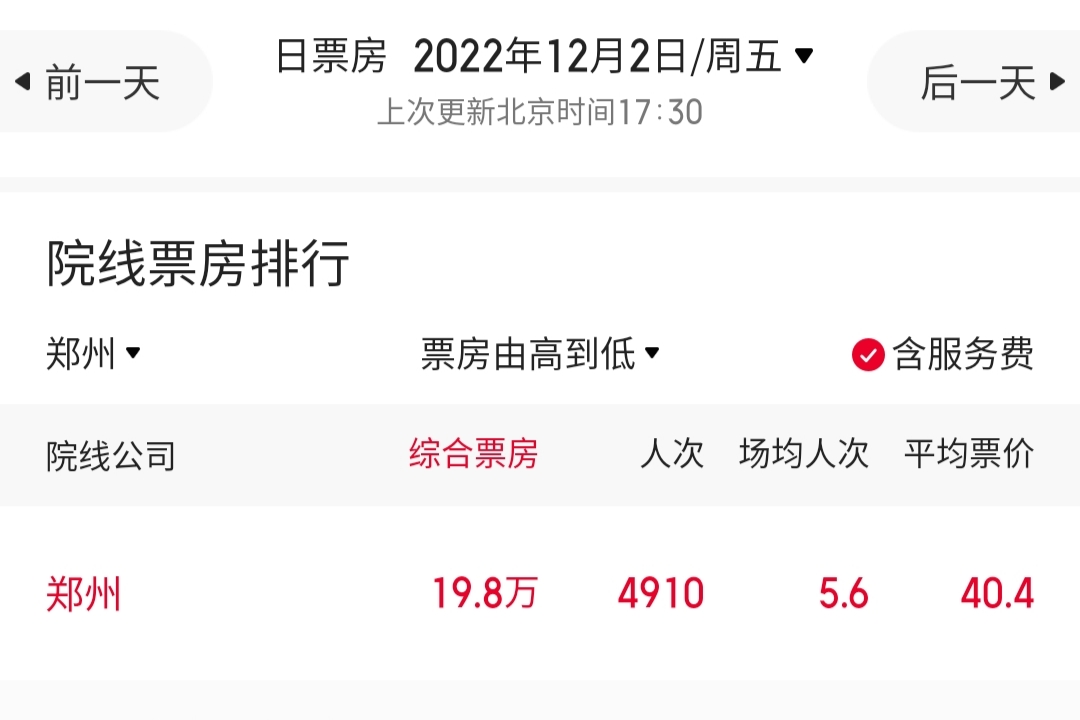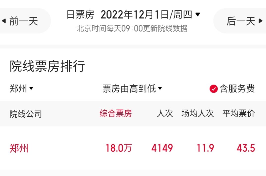 近年来,受新冠肺炎疫情的影响,大众娱乐行业市场低迷,不少电影人自嘲“影院虽然关关开开,也依然是最后的倔强,希望能倔强到底”。根据猫眼数据显示,郑州市12月1日票房数据显示18万,说明昨天开始影院复苏已经正在进行中,今天截至记者发稿时票房数据为19.8万,虽然数据较正常数据相差很远,但毕竟刚刚开始。