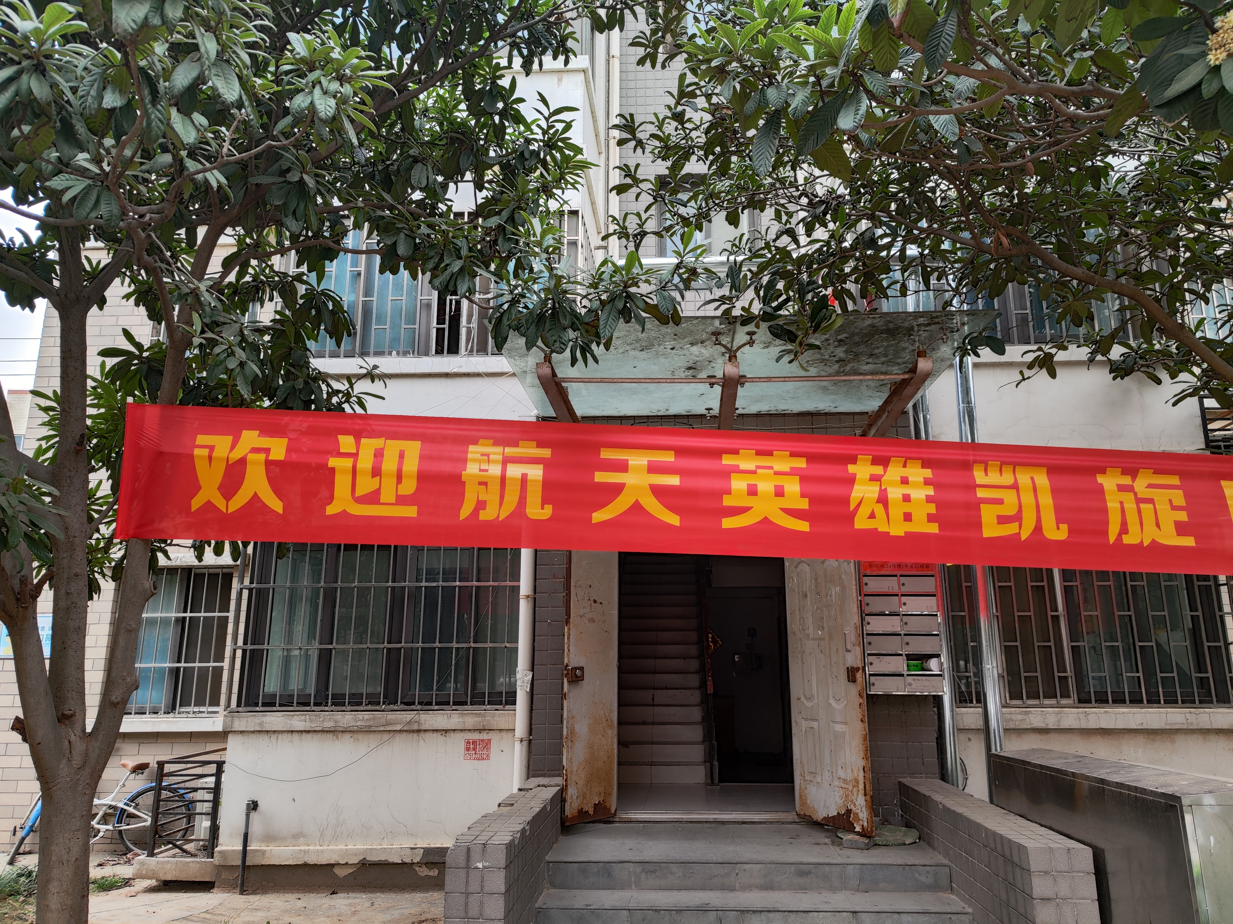 “致敬中国航天人,你们是祖国的荣耀”“欢迎航天英雄凯旋”老两口居住的小区,一条条红色横幅营造出热烈、期盼的“氛围感”。