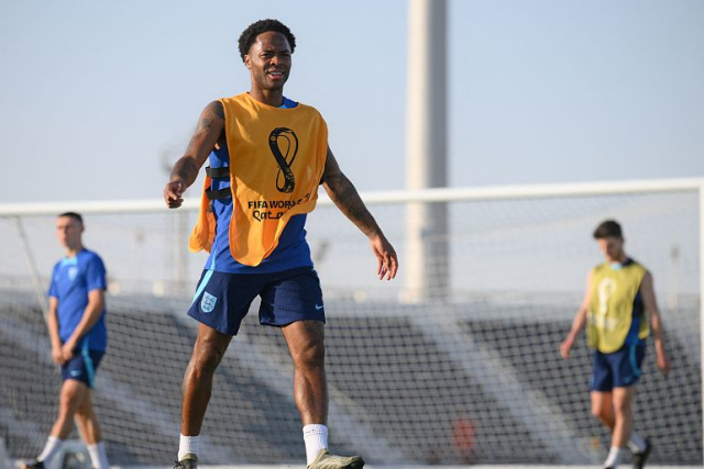 11月28日,英格兰队球员斯特林参加球队训练。(资料图)