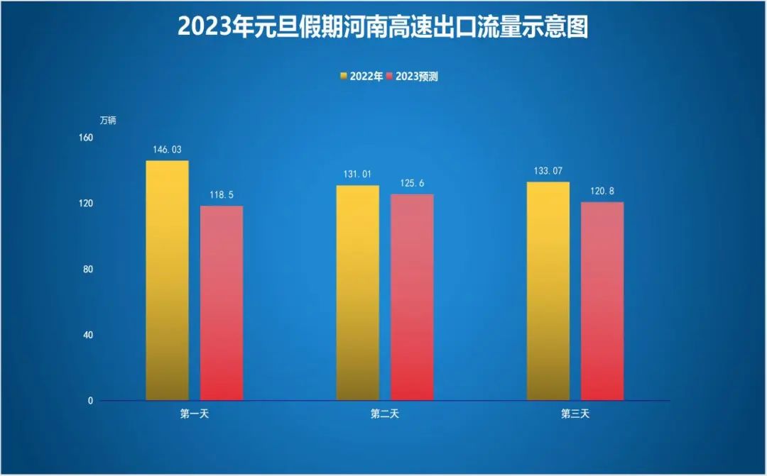 综合假期天气、收费政策等因素,预计今年元旦假期,我省高速公路出口总流量将持续回升,假期总流量将接近360万辆,日均约120万辆,较节前日常流量增长明显。