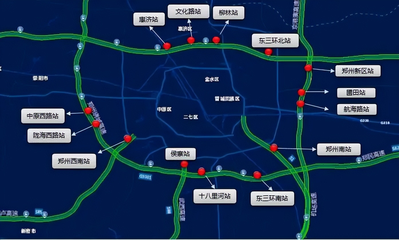 郑州绕城高速(G3001):十八里河站、陇海西路站等
