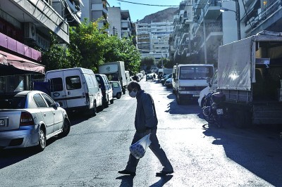 10月6日,一名老年人走在希腊雅典街头。新华社发