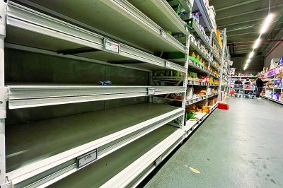 欧盟统计局10月31日公布的初步数据显示,经季节调整后,今年三季度欧元区和欧盟国内生产总值(GDP)环比均仅增长0.2%。而比利时、拉脱维亚和奥地利经济已现环比萎缩。图为10月31日,比利时布鲁塞尔一家超市售卖平价鸡蛋的货架空空如也。新华社发