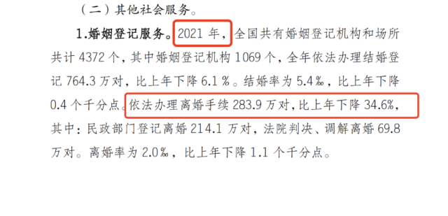 记者从民政部官网发布的《2020年民政事业发展统计公报》《2021年民政事业发展统计公报》了解到,2020年、2021年离婚数字出现了不同程度的下降↓