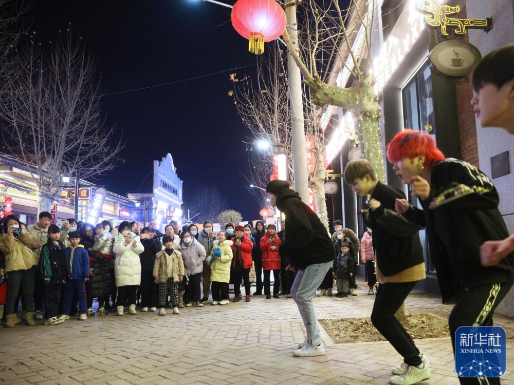 2月4日,街舞爱好者在殷墟考古文旅小镇表演。新华社记者 兰红光 摄