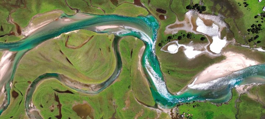 走向新措,沿途溪水潺潺,山林与草甸交织,静谧安然。