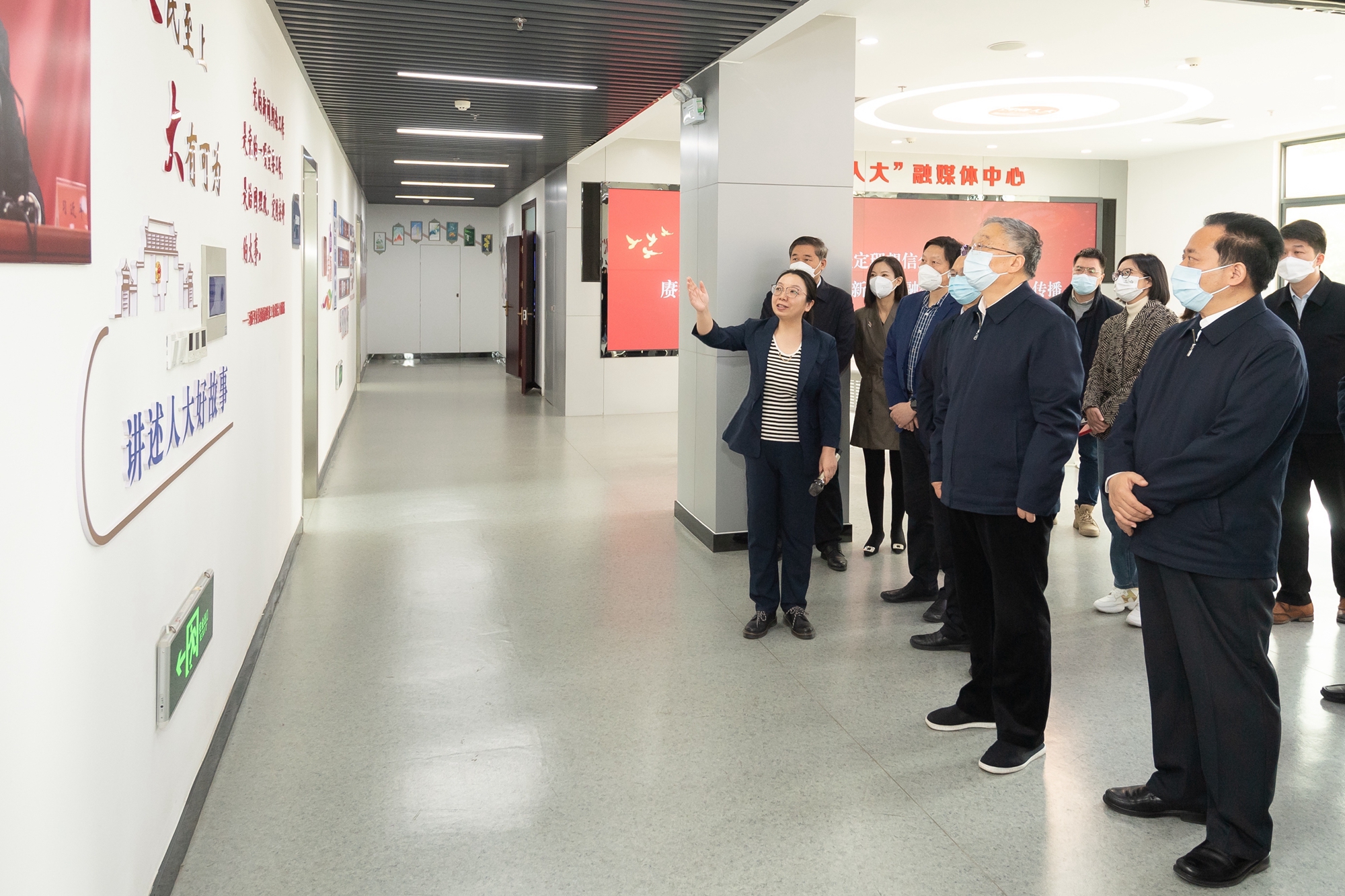 河南省人大融媒体中心讯(记者 席茜 宋向乐/文 贺志泉 李恒/图)2月14日,省人大常委会党组书记、副主任李亚视察省人大融媒体中心、人大历史陈列室、视频会议室等运行情况。省人大常委会秘书长、机关党组书记吉炳伟,副秘书长、办公厅主任吴文毅,副秘书长、机关党委书记李经超,办公厅副主任赵福杰,办公厅研究室主任黄登峰参加视察。河南日报社、河南广播电视台有关负责同志参加视察。