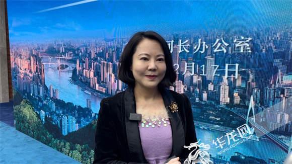 记者团正在采访重庆市水利局副局长、市河长办副主任任丽娟。华龙网-新重庆客户端记者 张馨月 摄
