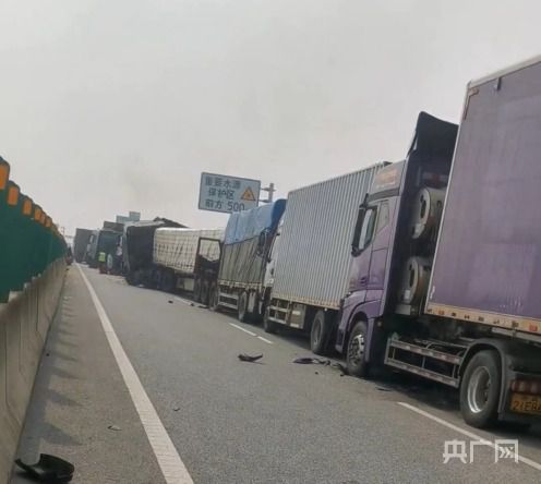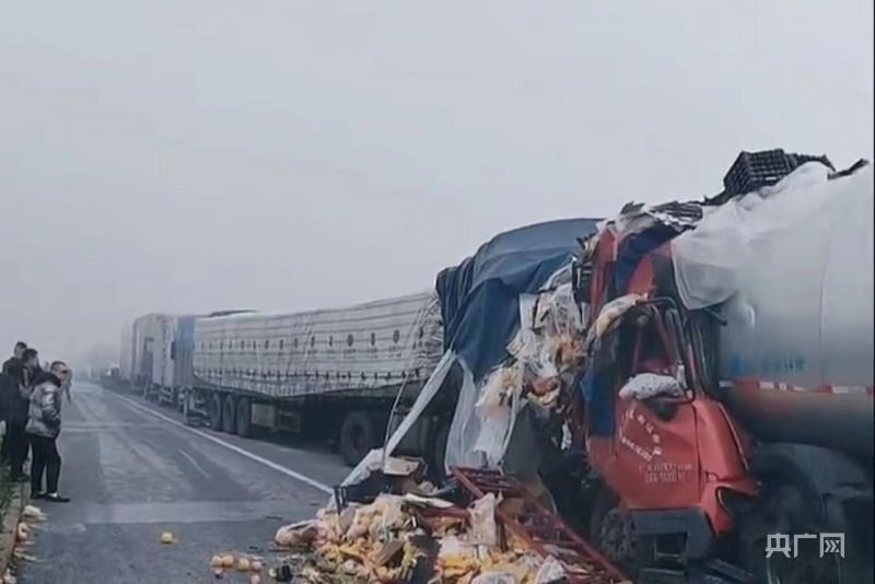 央广网南阳2月24日消息(记者 彭华)2023年2月24日8时许,河南南阳市内邓高速邓州段发生多车连环追尾事故。现场数辆车相撞,多辆大车受损变形严重,有车辆燃起大火。一名目击者称,当时受大雾笼罩,能见度从起初的30米降至1米,造成多辆车发生追尾。
