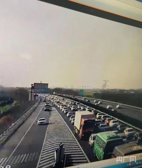 内邓高速龙堰站下站口视频监控显示直行车辆拥堵(央广网发 程海舟供图)