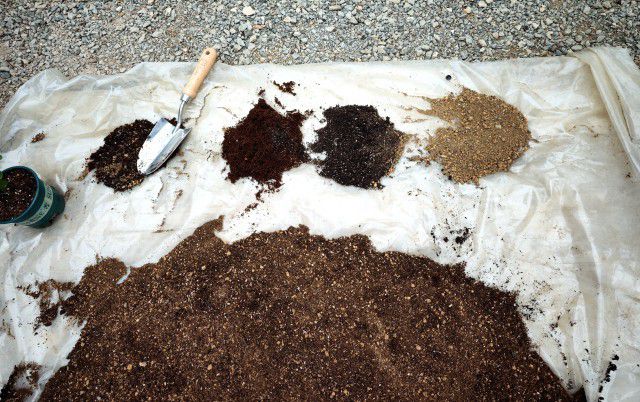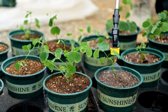 科研人员用黄心土、泥炭土、椰糠等按比例配制成培土。