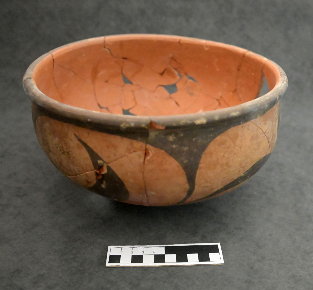 这是在洛阳苏羊遗址出土的仰韶时期彩陶盆(资料照片)。新华社发