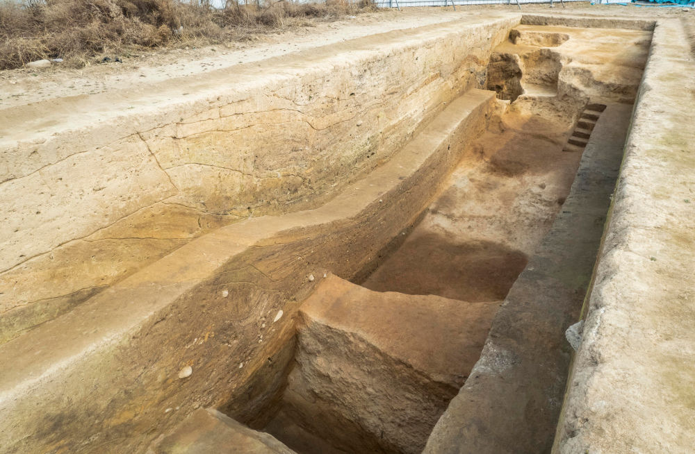 这是2月28日在洛阳苏羊遗址考古现场拍摄的人工环壕。新华社发 (董格非摄)