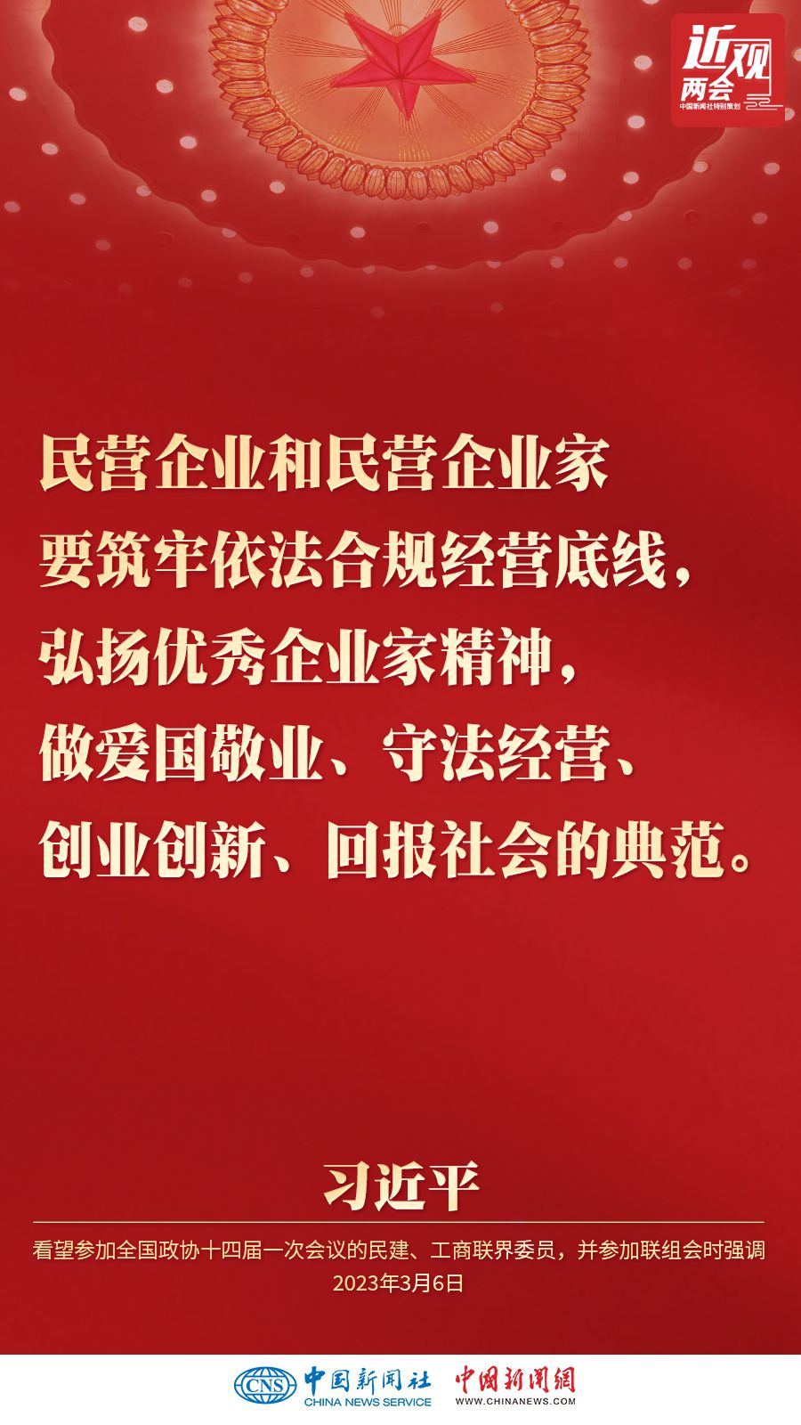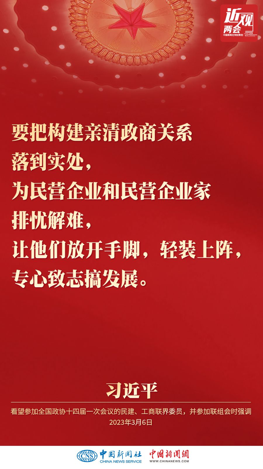 中共中央总书记、国家主席、中央军委主席习近平3月6日下午看望了参加全国政协十四届一次会议的民建、工商联界委员,并参加联组会,听取意见和建议。他强调——